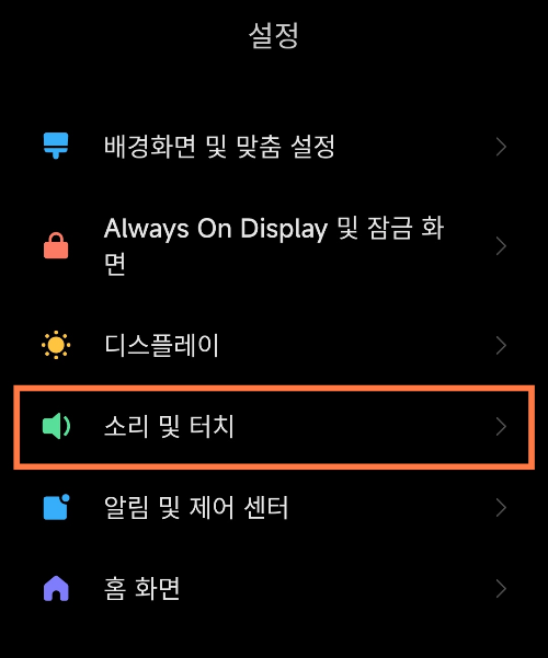 2. 소리 및 터치 항목을 클릭합니다.